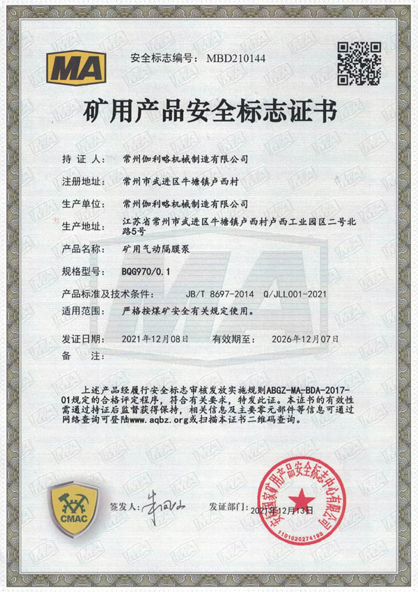 • 礦用安全標志證書-BQG900/0.1